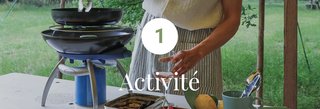CONSEIL : si vous partez camper en famille ou avec des amis, vous pouvez partager un moment convivial autour d'un barbecue. De plus, la cuisson au charbon de bois donne un goût fumé typique, impossible à reproduire avec un réchaud au gaz. Saviez-vous qu'on peut même faire du pop-corn sur la grille du barbecue ? Vous pouvez aussi utiliser un « Dutch Oven » pour préparer des petits plats mijotés.