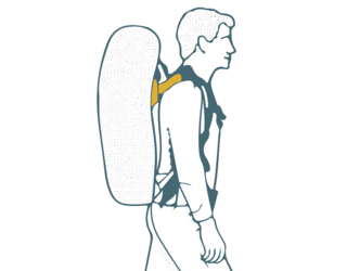 CONSEIL : plus le poids est proche de votre corps et serré, moins la gravité aura d'effets et plus votre corps sera soulagé. Serrez bien les sangles de compression ! L'idéal est de répartir le contenu de votre sac à dos sur toute la longueur du dos. Placez le poids le plus lourd dans le haut du dos, le plus près possible de votre dos.