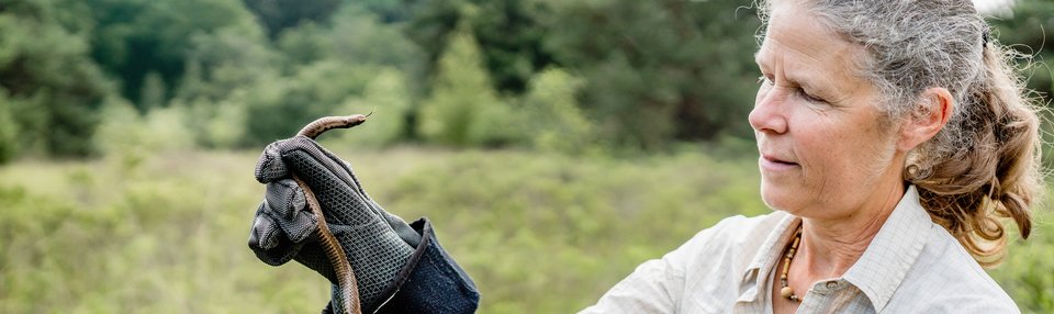 Cette biologiste mène depuis près de 35 ans des études de terrain sur la population de vipères au Groot Schietveld