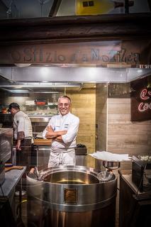 S’il existait une chaire universitaire pour les pizzaiolos, Enzo Coccia en serait sûrement titulaire. Il a grandi dans le quartier ouvrier jouxtant la gare centrale de Naples, où il passa le plus clair de son enfance dans la pizzeria de son père. Il y a vingt ans, Enzo a réalisé son vieux rêve en ouvrant la Pizzaria La Notizia. L’ancienne orthographe Pizzaria évoque la tradition séculaire ; La Notizia signifie qu’il y a toujours de délicieuses nouvelles à se mettre sous la dent.
