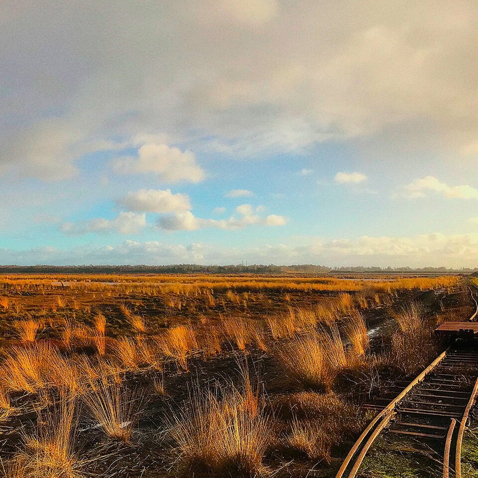 • Overblijfselen van de turfwinning zoals oude rails en wagons van smalspoorlijnen.