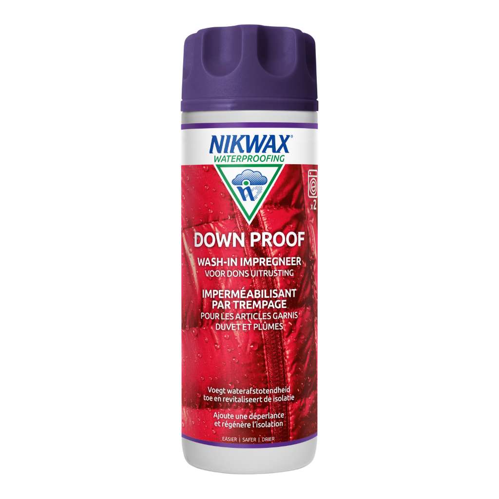 Als je je donsjas of -slaapzak al even gebruikt, kan de DWR-laag – die ervoor zorgt dat het stuk waterafstotend is – afslijten. Geen nood: een behandeling met Nikwax Down Proof brengt opnieuw een flexibel en duurzaam waterafstotend laagje aan op het dons en de buitenste stof. Zo wordt je dons opnieuw ademend en waterafstotend.