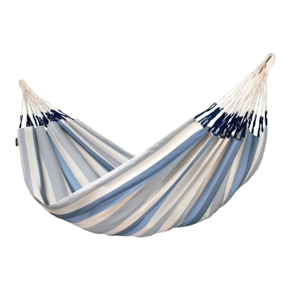 Niemand kan de lokroep van deze comfortabele streepjeshangmat weerstaan. Dankzij de spreidstokken blijft de stof mooi openstaan, waardoor je er zowel horizontaal als diagonaal kan in liggen. De Santa Barbara is geschikt voor twee personen. Opgepast, de verleiding van deze hangmat is groot om samen een heerlijk dutje te doen in de schaduw!