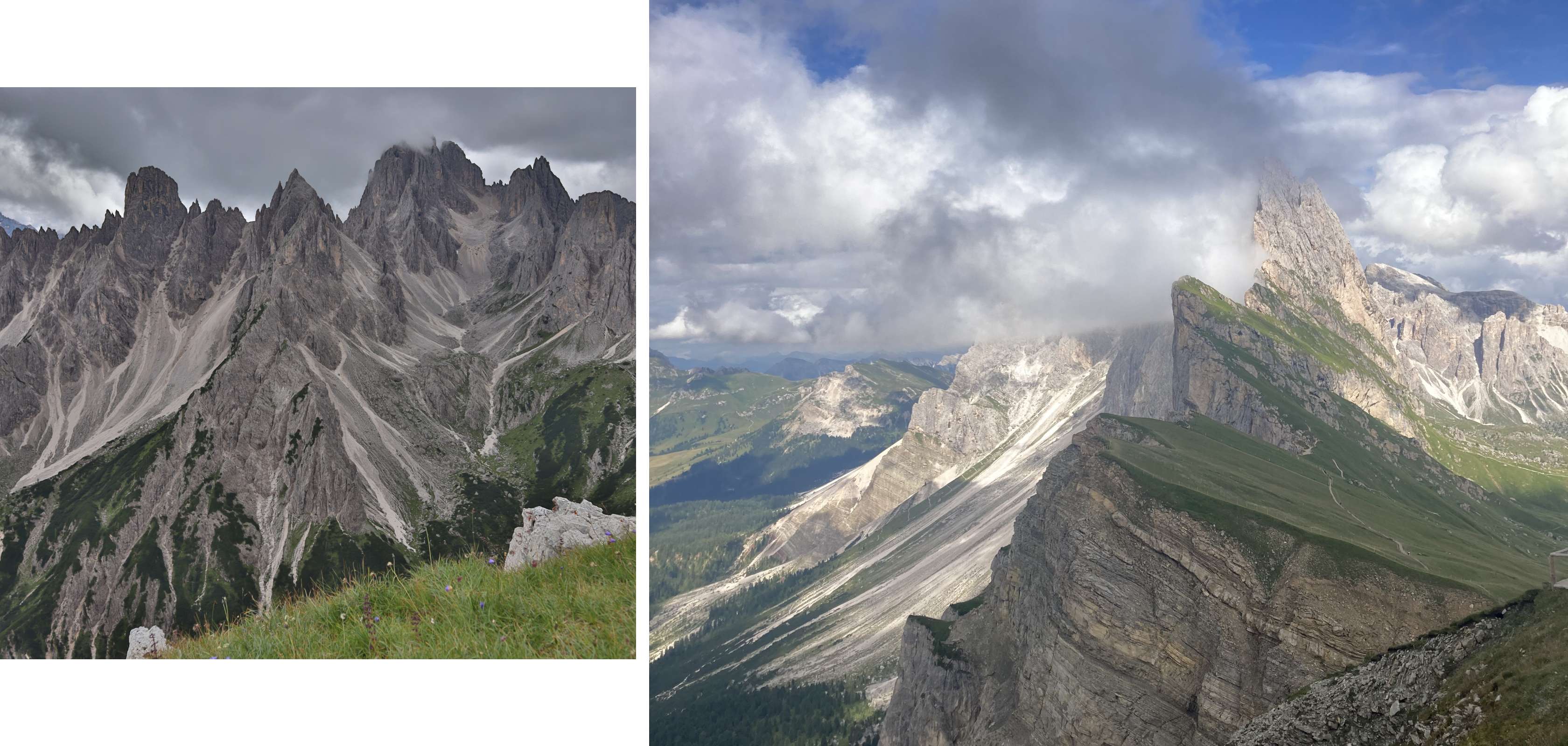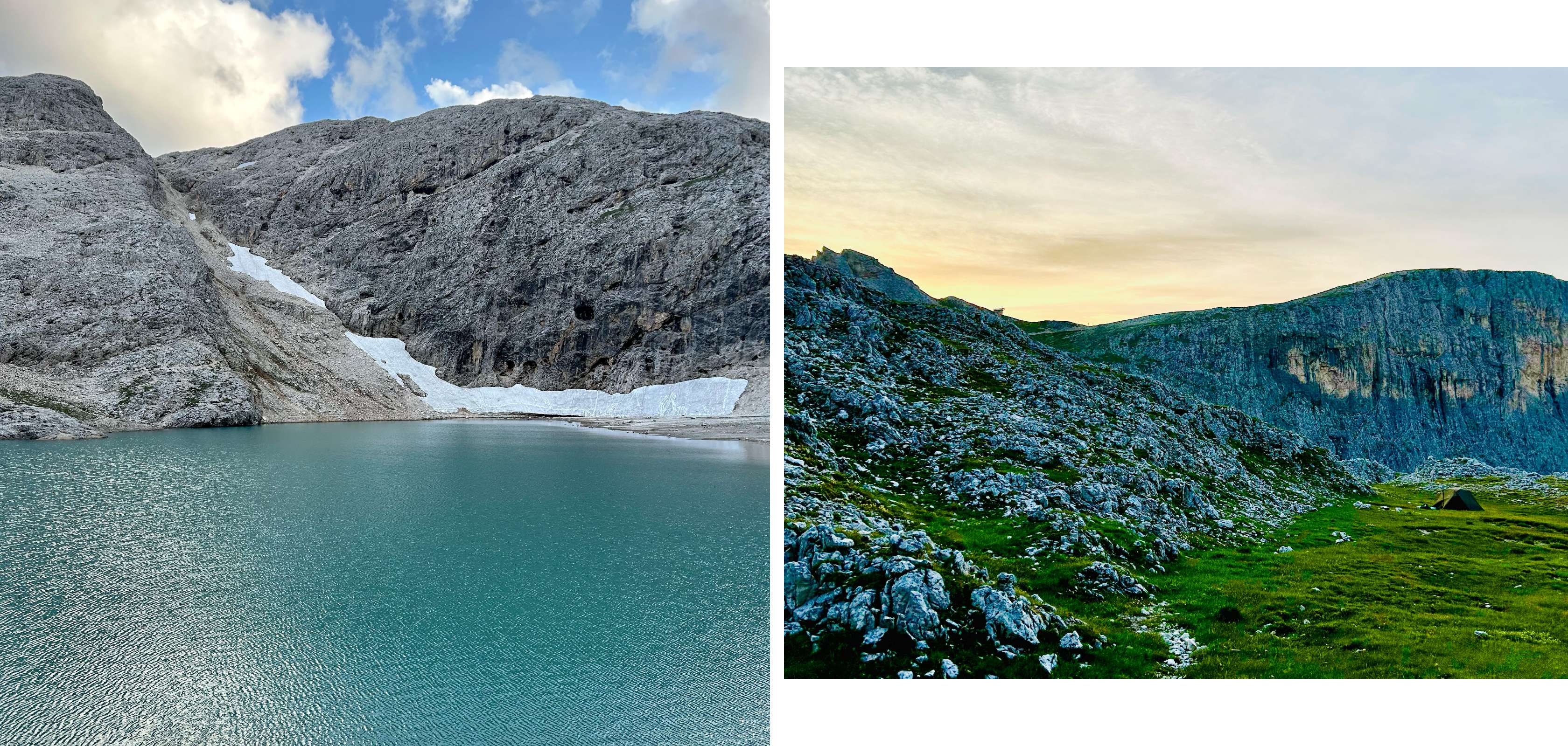 “In plaats van de klassieke wandelroute langs de berg, klauterden we de eerste dag langs de via ferrata over de top van de Kesselkogel – de hoogste berg van de Dolomieten – tot aan Lago di Antermoia, een ijsblauw meer tussen de rotsen. Daar staat een knusse berghut met een schitterend uitzicht: Rifugio di Antermoia. De volgende dag wandelden we langs een andere via ferrata (via ferrata delle scalette) terug. Die eerste via ferrata bleek behoorlijk lang en uitdagend – gelukkig was het niet onze eerste keer. De tweede via ferrata was korter en veel toegankelijker.”