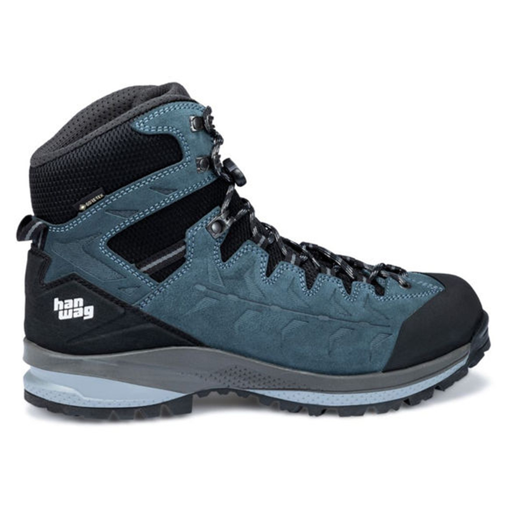 “Deze stoere stapper van Hanwag is de eerste categorie B-schoen in echt brede uitvoering. . Dus ga je backpacken door bergachtig terrein? Dan heb je bij deze het juiste model gevonden: een stevige wandelschoen met een stijve maar superlichte zoolconstructie, die grip en steun garandeert, zodat jij gezwind als een berggeit naar boven huppelt. Dankzij het Gore-Tex-membraan is de schoen waterdicht en blijven je voeten droog. De ‘HANWAG 2 Zone Lock’, het ‘slotje’ boven op de veters, zorgt voor een betere hielfixatie.”