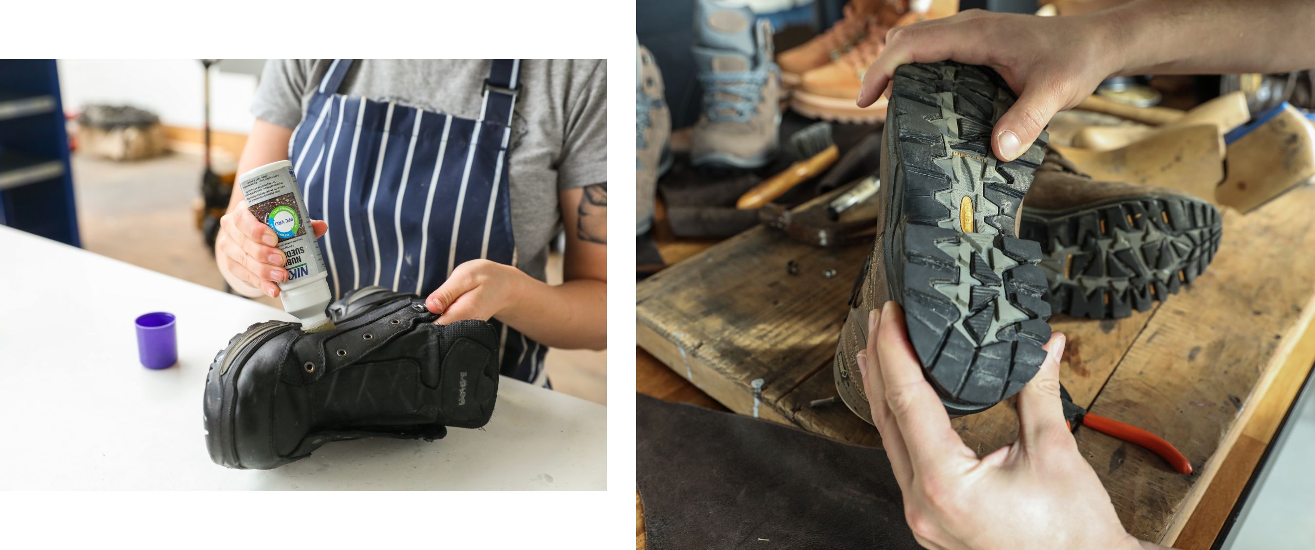 “Bovendien is herstellen vaak goedkoper dan nieuwe schoenen kopen”, voegt ze toe. “Denk maar aan verzolen of kleine herstellingen zoals nieuwe veterhaakjes of het herstellen van stiksel. Wij helpen je te bepalen wat jouw schoenen nodig hebben, zodat je snel weet of ze hersteld kunnen worden of toch aan vervanging toe zijn.”